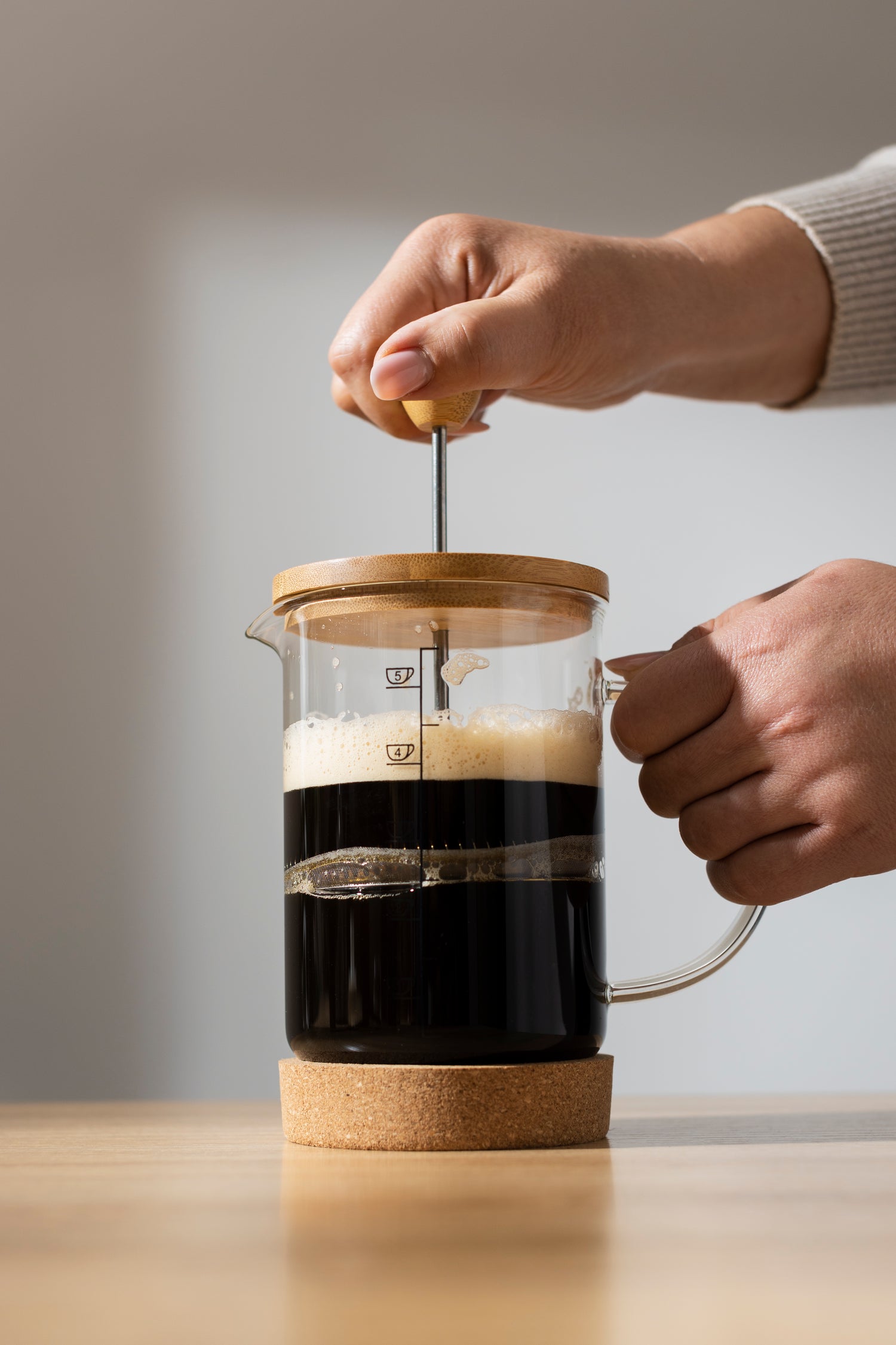 4. Enfin presser doucement le piston pour filtrer la boisson.