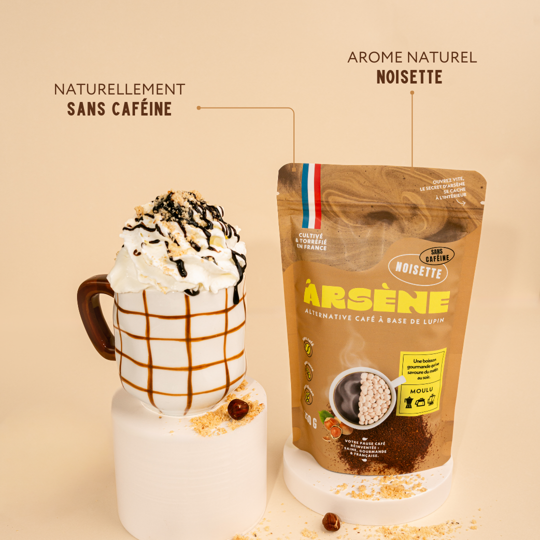 Arsène Noisette : une alternative au café gourmande et réconfortante : la même recette avec une touche d'arôme naturel de noisette pour une boisson naturellement sans caféine et délicieuse.